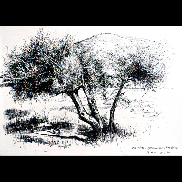 Balcony Corfu -evening - 1991 - Pencil crayon on Canson paper - 25cm x 41cm Behind the Ferns - 1991 - Pencil on paper - 25cm x 41cm Chinese Lanterns -3 - 1993 - Oil Pastel on paper - 30cm x 23cm Continue to strive 45 - 1992 - Pencil crayon on paper - 38cm x 28cm Corfu sketchbook -studies - 1991 - Pen and ink - 36cm x 23cm Dan -sketchbook study - 1997 - Pen and ink on paper - 20cm x 25cm Dan -1 study - 1992 - Pencil crayon on paper - 38cm x 25cm Dan -2 study - 1992 - Pencil crayon on paper - 38cm x 25cm Dead Man's Shoes - 1993 - Oil Pastel on paper - 33cm x 48cm Feeling Better in Ixia - 1991 - Pencil crayon on paper - 40cm x 30cm Mad dogs and Englishmen -Karaincir - 1994 - Pen and ink - 30cm x 40cm Mirror More 44 - 1991 - Oil Pastel on paper - 41cm x 28cm Old Olives -afternoon sun -Karaincir - 1994 - Pen and ink - 30cm x 40cm Perranporth -10 - 1993 - Pen and ink - 20cm x 25cm Perranporth -7 - 1993 - Pen and ink - 20cm x 25cm